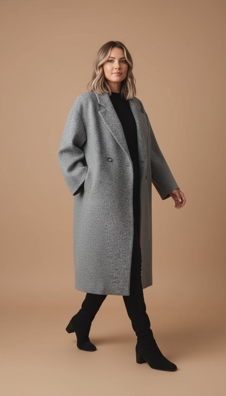 El abrigo que transforma cualquier look con su diseño sofisticado y atemporal. Ideal para los días fríos, combina estilo, calidez y comodidad en una sola prenda.